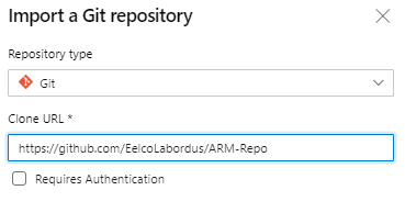 After the project is created you will automatically go to the new created Project. Now we need to clone the git repo from me EelcoLabordus/ARM-Repo (github.com). You need to go to “Repos” and select “Import a repository”.