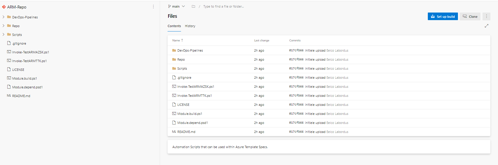 After importing the Repo you need to setup two build pipelines, the first pipeline is validate the ARM files the second pipeline is again to validate the ARM files and create an Artifect.