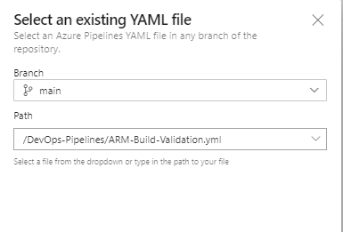 First we need to select the ARM-Build-Validation.yml file, this file is used for testing the ARM files before placing the code into the Main/Master branche.
