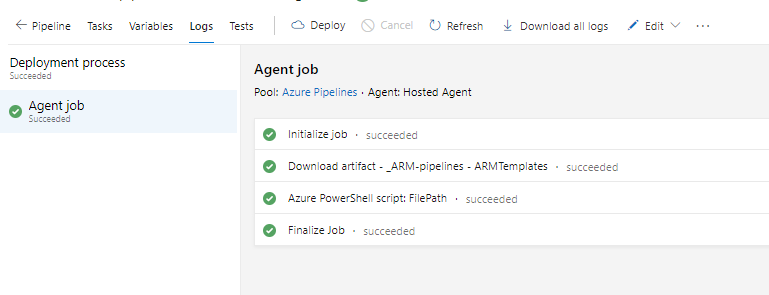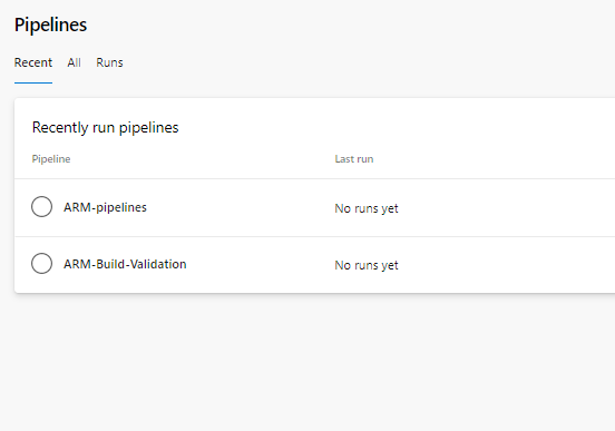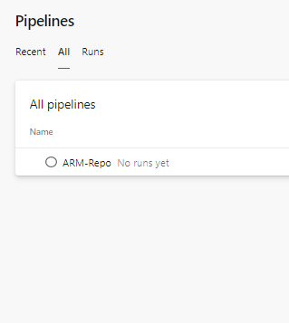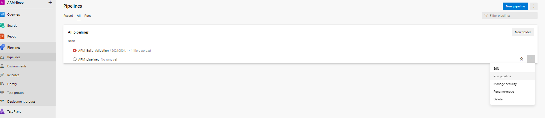 After configuring everything it is recommended to run the ARM-pipelines, this is necessary for the next steps. We need the artifact been created once.