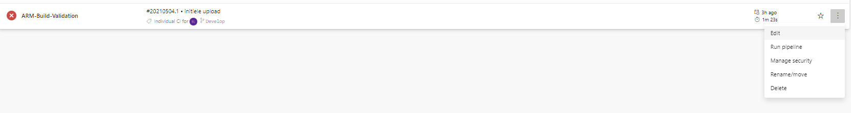 After the build pipeline is imported into the Pipelines it is recommanded to rename this one into “ARM-Build-Validation”. If you will not do this and you will import the other pipeline it is not clear what is what.