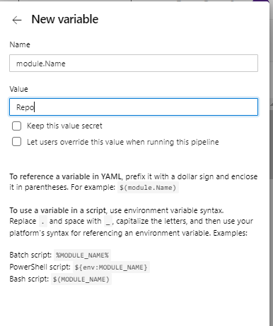 Last for the build pipelines we need to setup the module variables, this is the same way as we had set them up with the PowerShell build release pipelines in the other vlog.