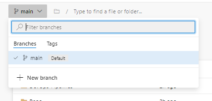 Go to “Repos” and select “Files” after this selected the branches icon and “+ New branche”