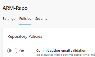 Now we need to setup branch policies, the policies can be used to validate the code that will be uploaded to the Master/Main branch.