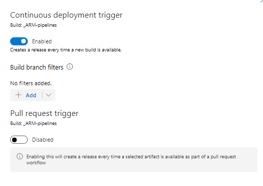 After the Artifact is configured, I recommend enabling Continuous Deployment. Select the lighting button in the artifact window.